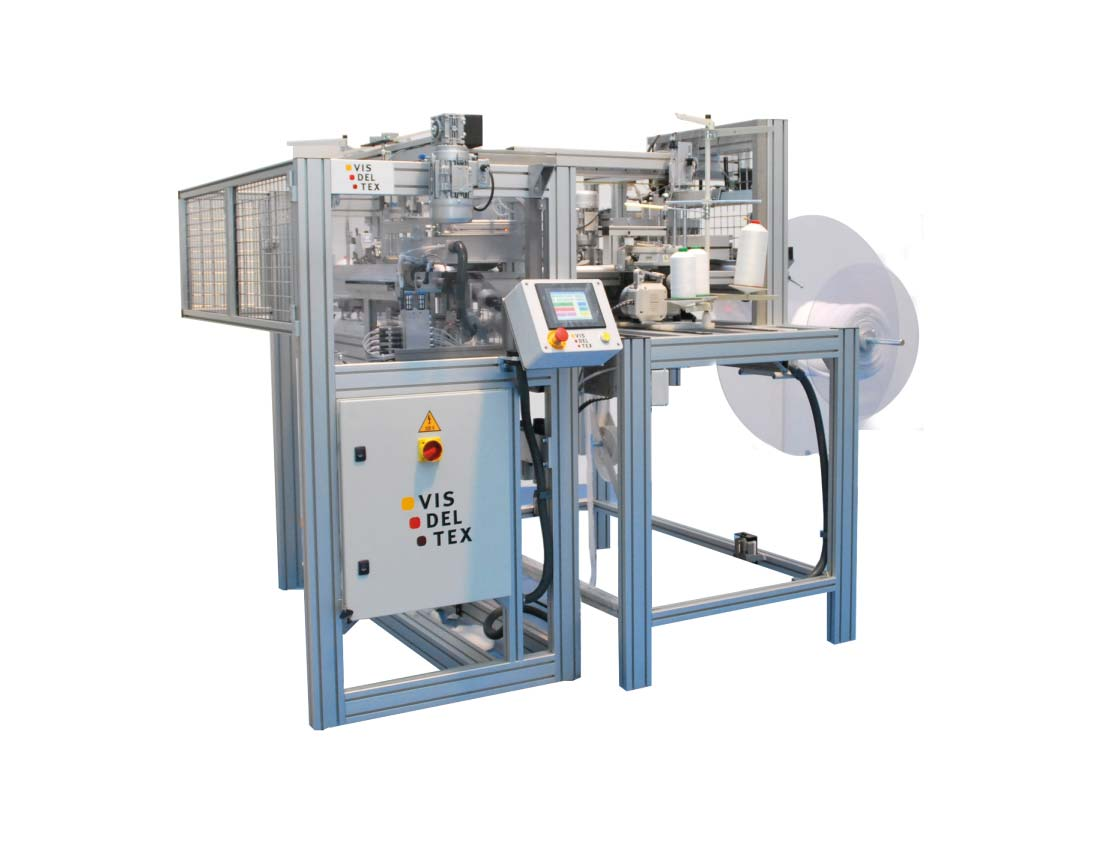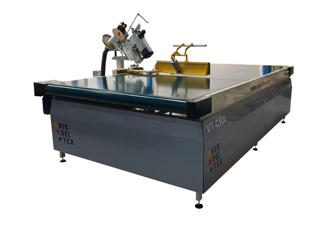 Máquina especializada en la inserción automática de asas horizontales sobre platabandas. Diseñada para optimizar la producción mediante alimentación continua desde rollo, medición precisa y software intuitivo para el diseño y posicionamiento de las asas. Ideal para la industria del descanso o tapicería que requiere soluciones automatizadas y personalizables.